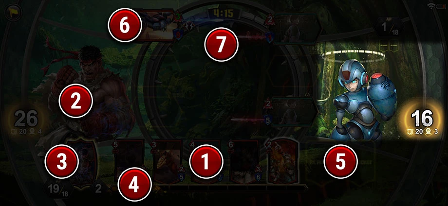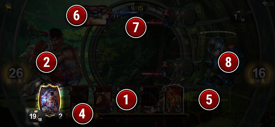 In addition, the opponent's EX Pocket and Art Points are also displayed on top of their Hero.Gameplay[]