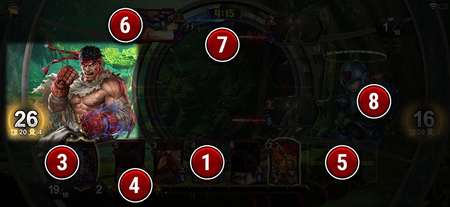 2.The small number to the left is the amount of cards you have remaining on your Deck. When this reaches 0, the match will not end.